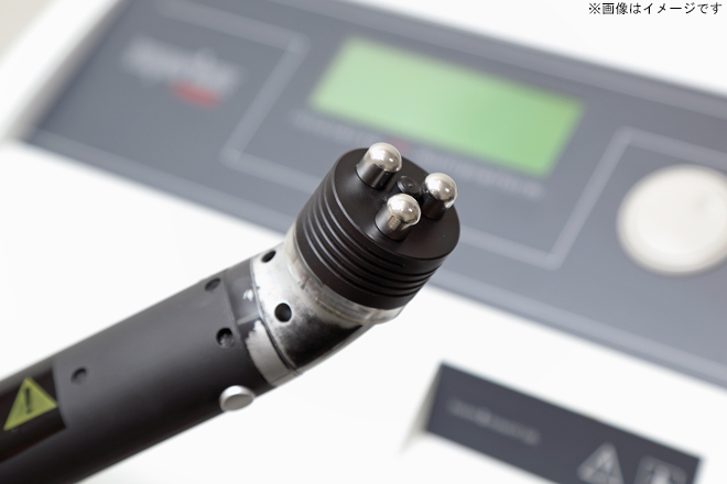エレクトローポレーションの電気パルスをかけることにより細胞膜に微量な穴を空け、水溶性の有効成分をマイナスイオン化し真皮層まで浸透させることが可能です。