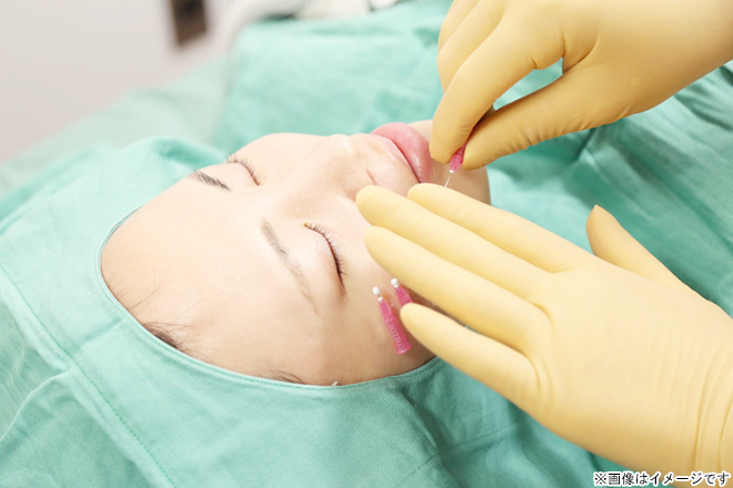 皮下組織に短く細い溶ける糸を挿入し、コラーゲンの生成を促す施術です。