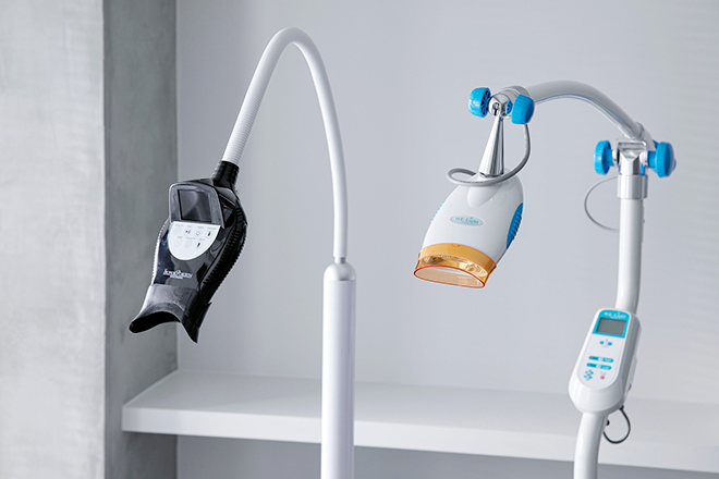 ホワイトニング材を塗布して薬剤効果を促進する光を照射し、内側から白い歯へと導きます。